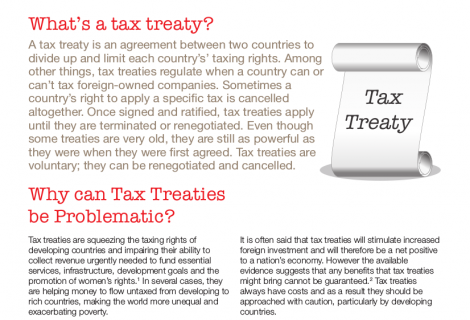 Tax treaties are squeezing the taxing rights of developing countries and impairing their ability to collect revenue urgently needed to fund essential services, infrastructure, development goals and the promotion of women’s rights. 1 In several cases, they are helping money to flow untaxed from developing to rich countries, making the world more unequal and exacerbating poverty.