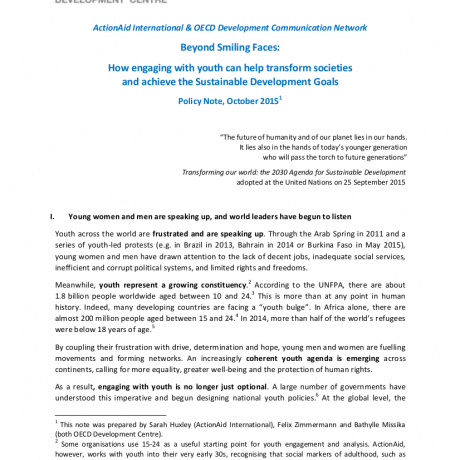 Beyond Smiling Faces: How engaging with youth can help transform societies and achieve the Sustainable Development Goals